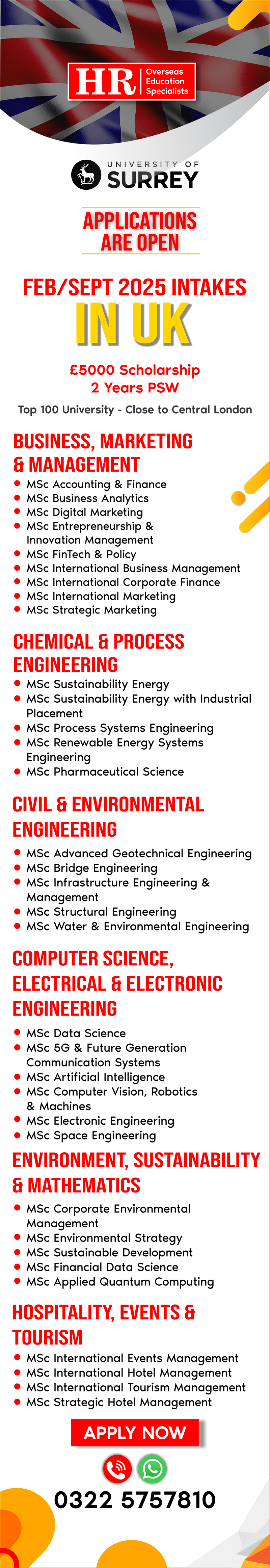 Applications are now open at the University of Surrey for February and September 2025 intakes across a wide range of postgraduate programmes.